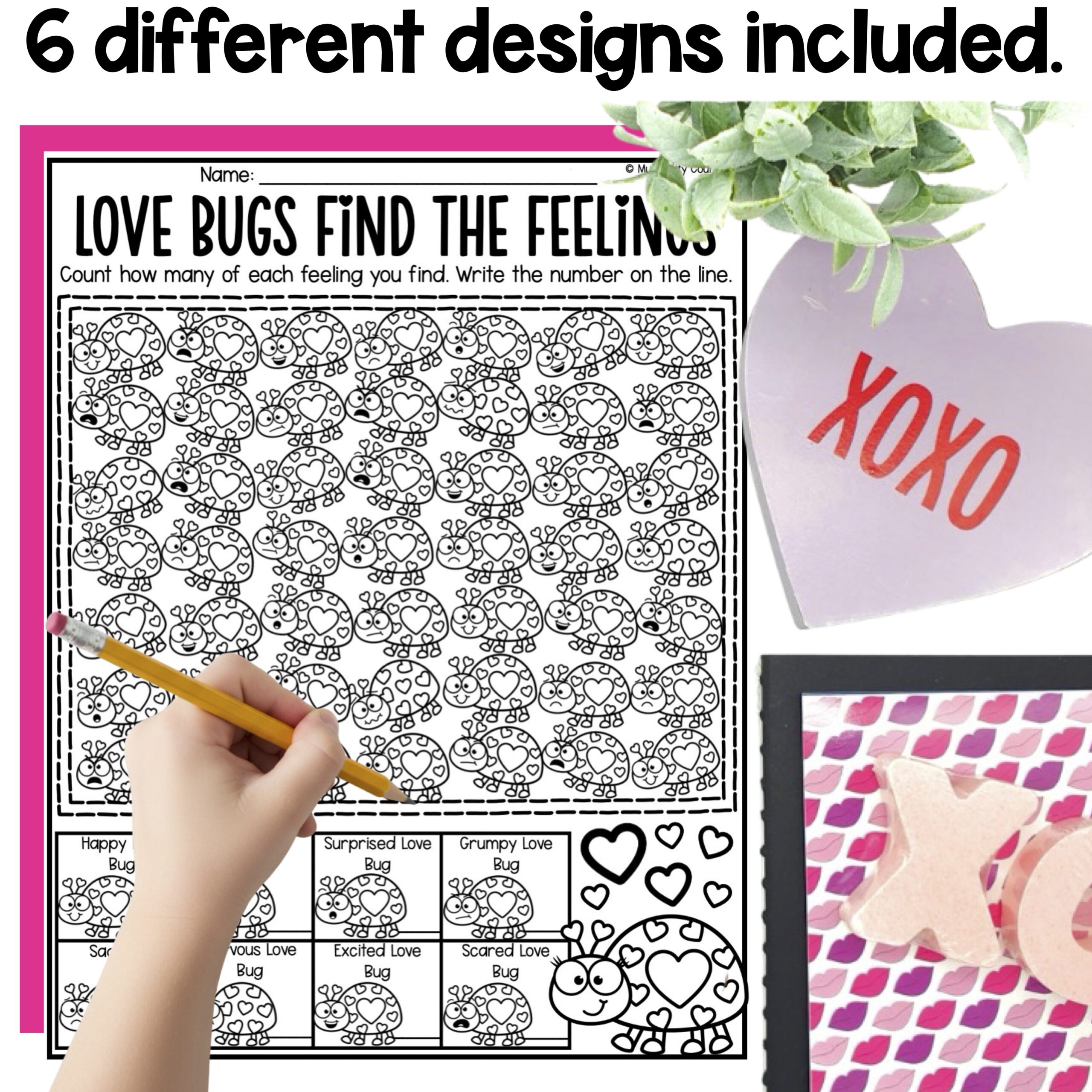 ♥️ 6 designs are included: Candy Hearts, Love Bugs, Love Monsters, Cupcakes, Valentines, and Cupids.